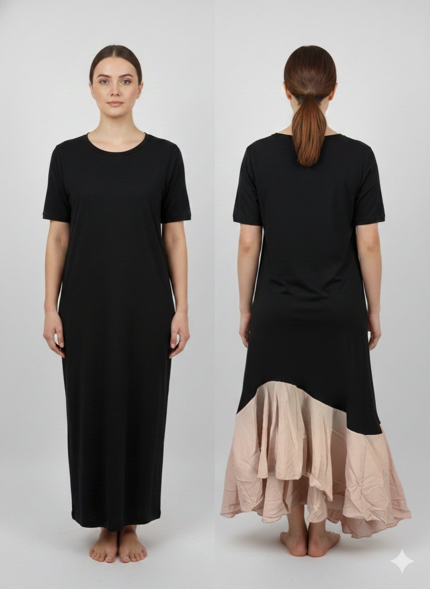 Be the first to review “Black Maxi Dress with Beige Ruffle Hem”
