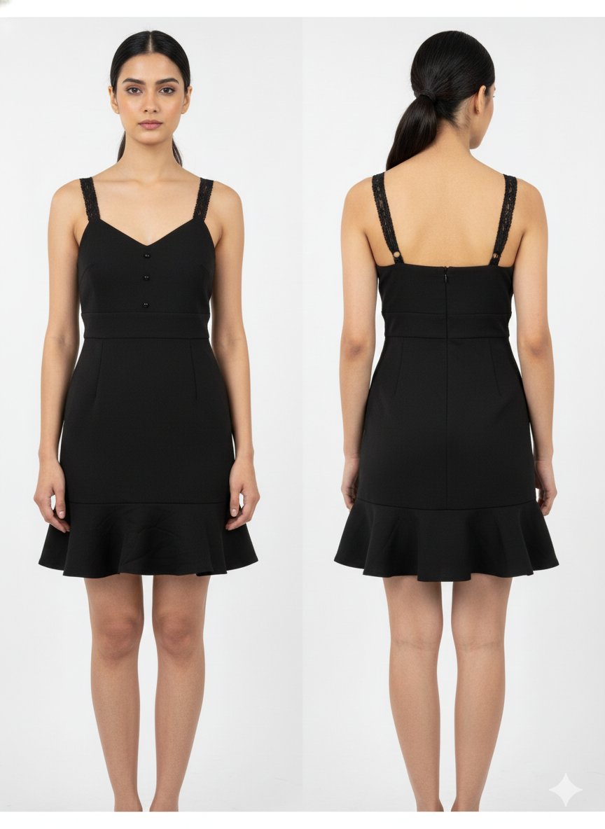 Be the first to review “Black Strappy Fit & Flare Mini Dress with Lace Straps”