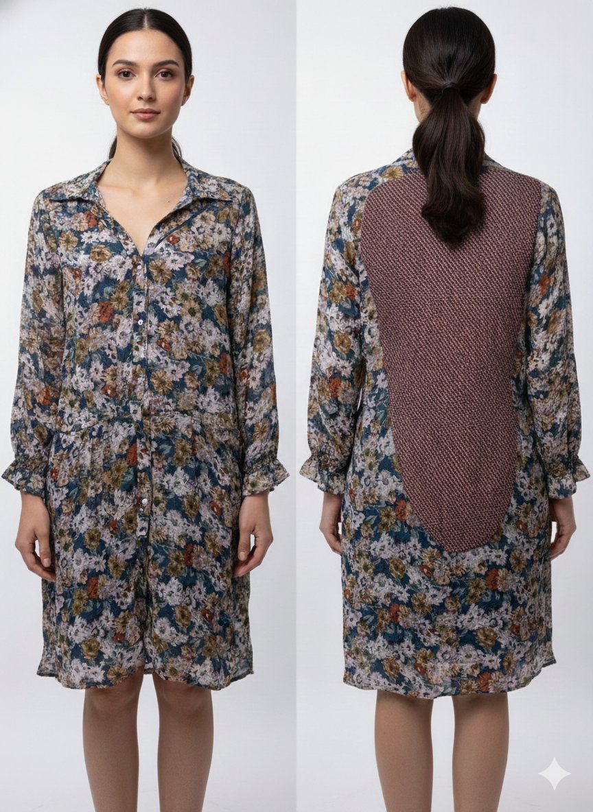 Floral Printed Shirt Dress with Contrast Back Panel