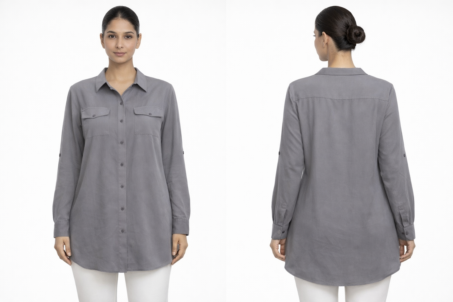 Grey Longline Button Down Shirt with Pocket Detail