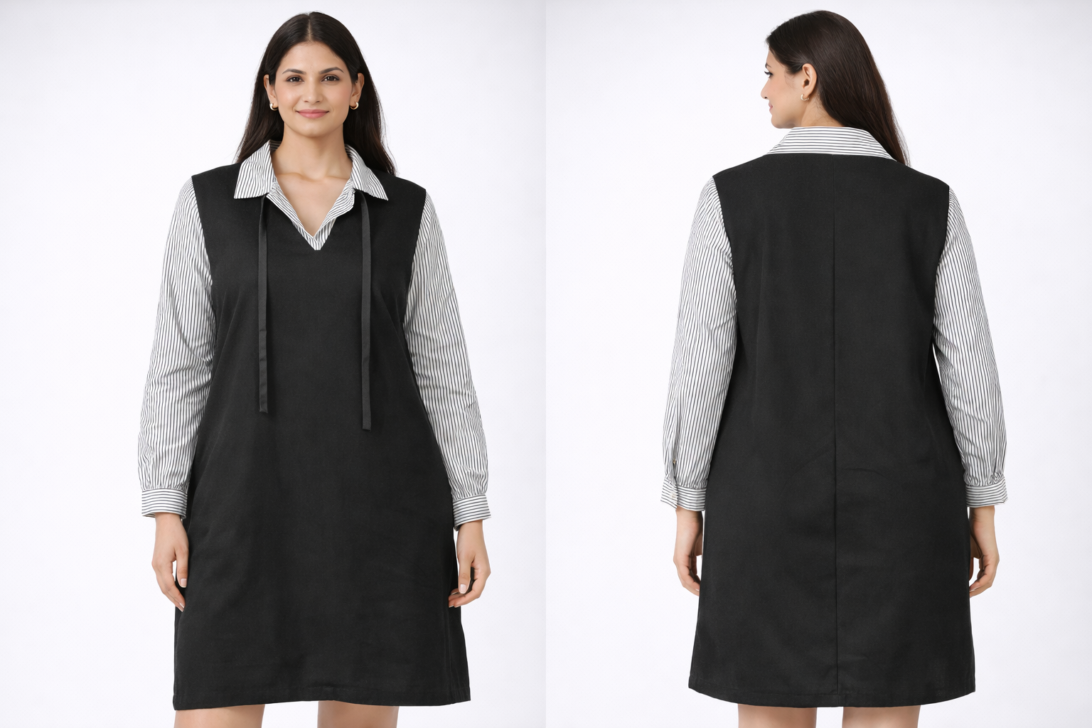 Be the first to review “Women’s Black Layered Pinafore Dress with Striped Shirt”