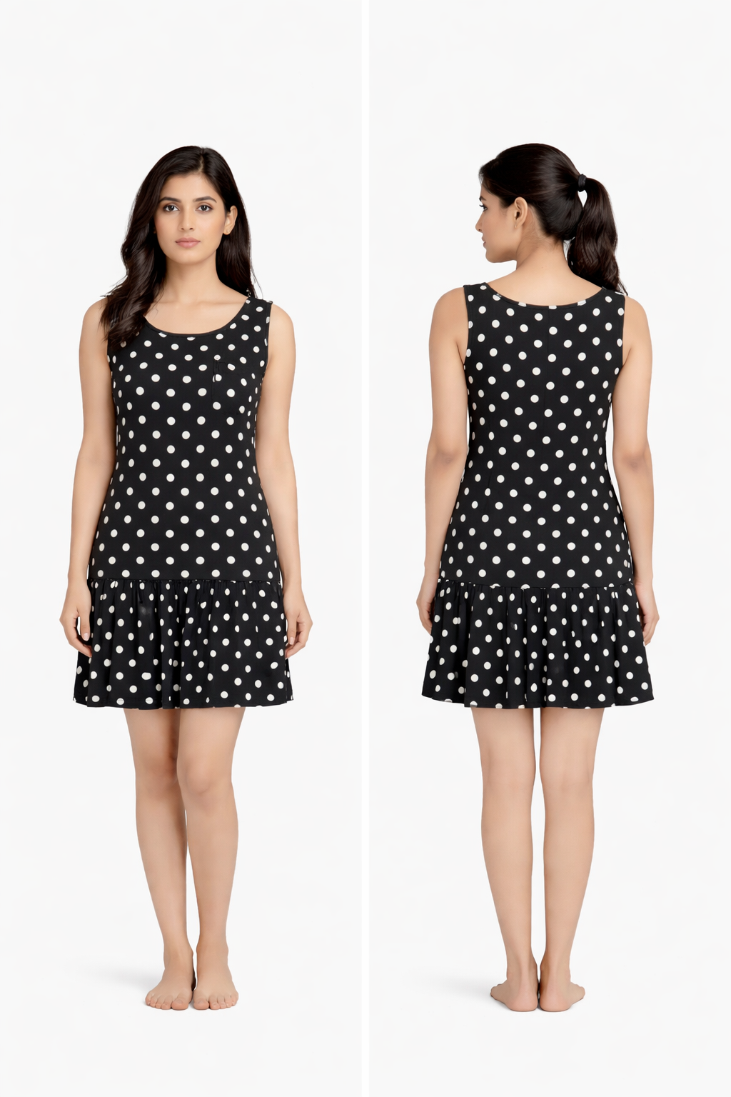 Women’s Black Polka Dot Sleeveless Skater Dress