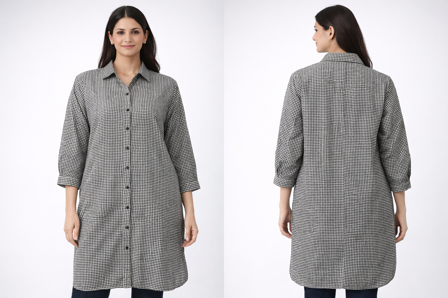 Women’s Black & White Checked Longline Shirt Dress