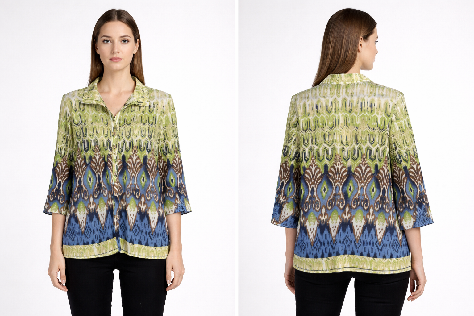 Women’s Green & Blue Printed Casual Shirt Top