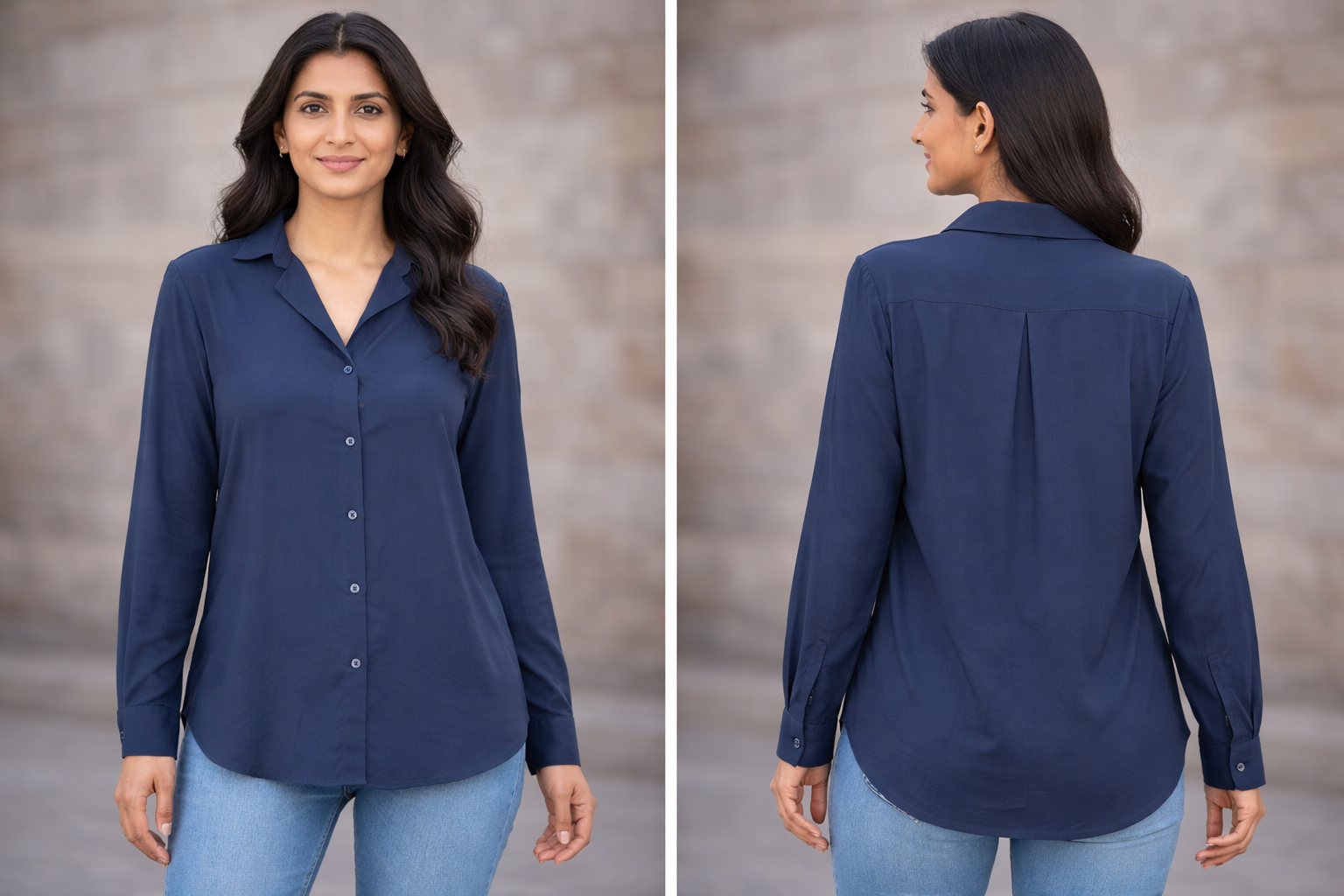 Women’s Navy Blue Solid Casual Formal Shirt