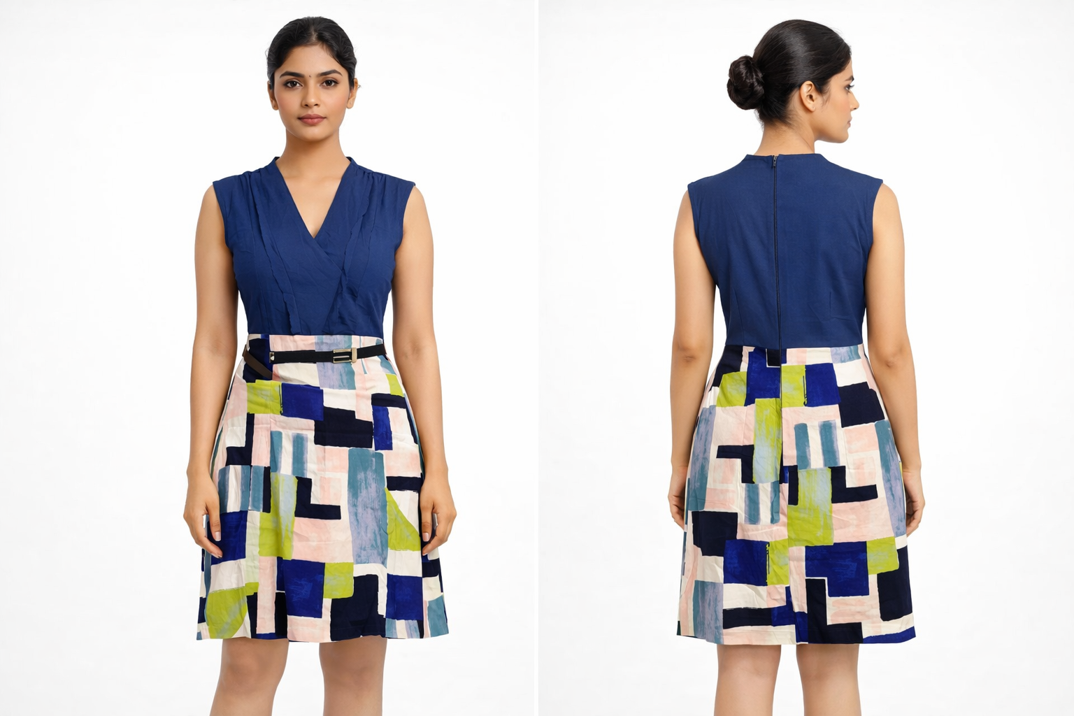 The sleeveless design and flattering A-line fit make it perfect for office, brunch, or casual outings.